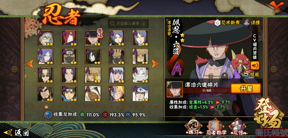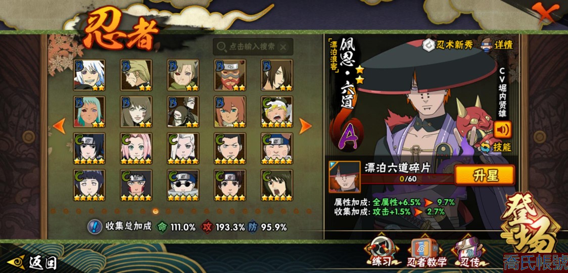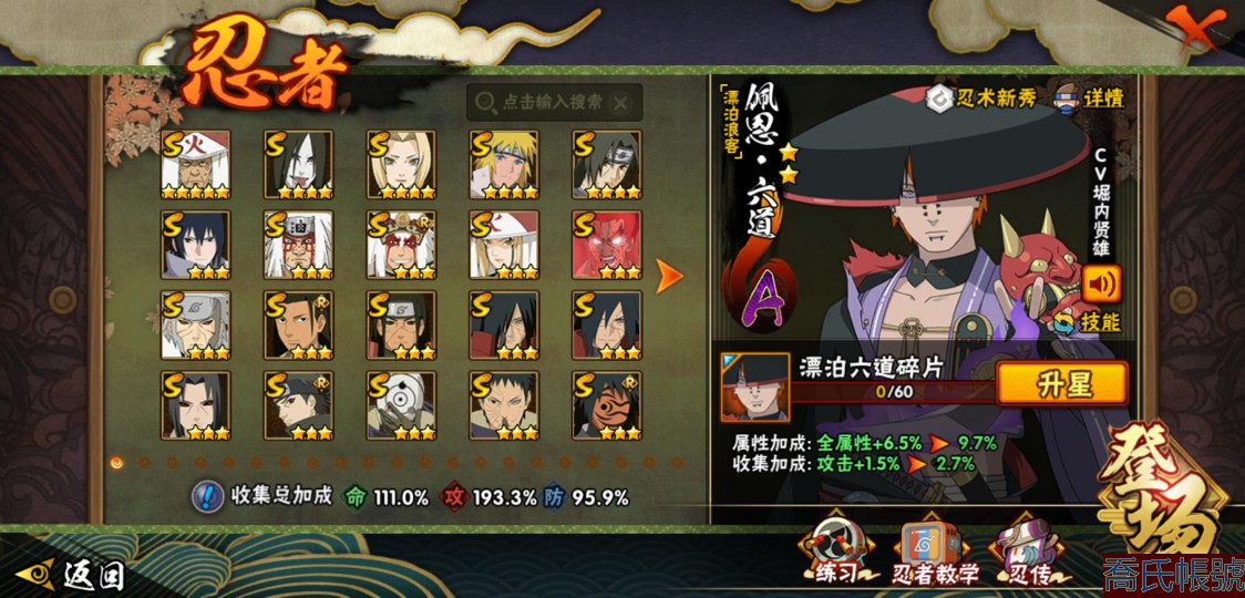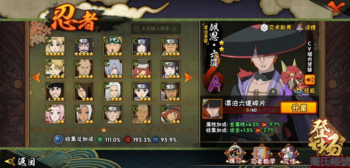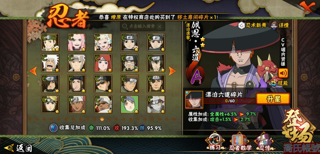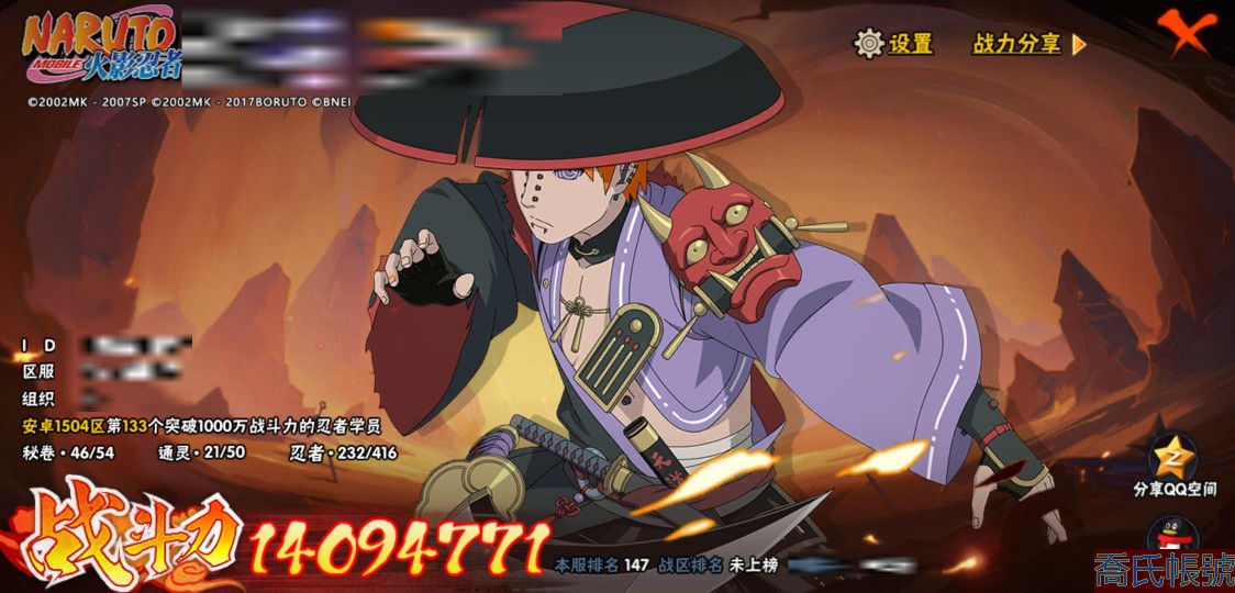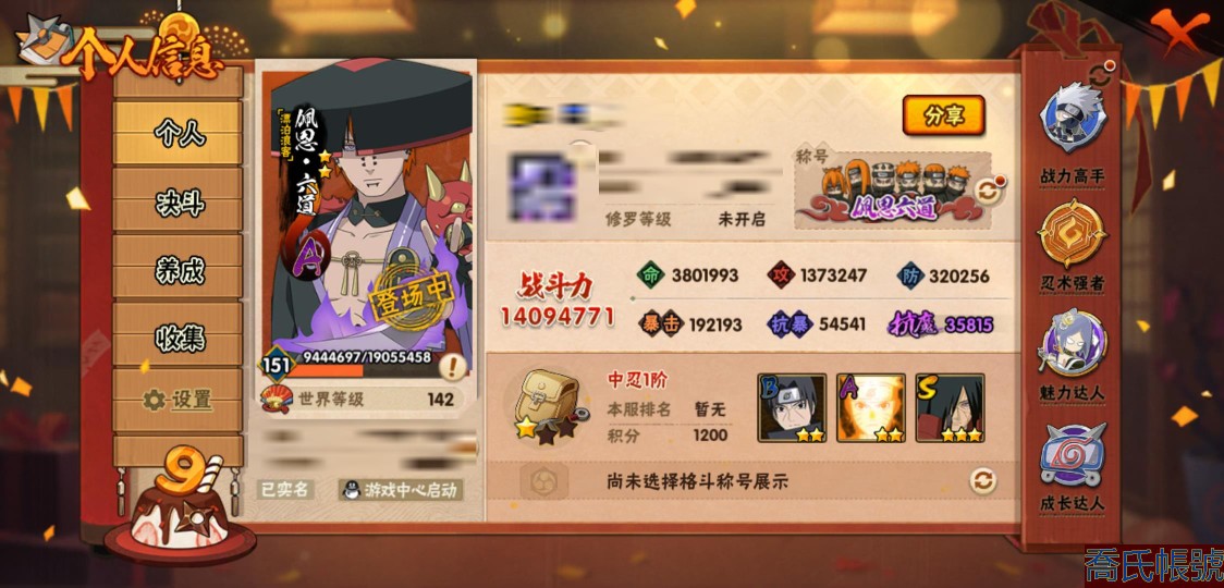 【11等】戰鬥力:1409W+;段位:中忍1階;本服排名:147;戰區排名:未上榜;VI