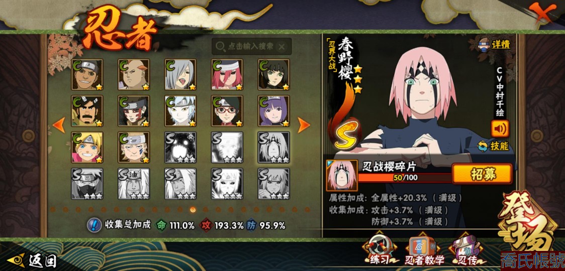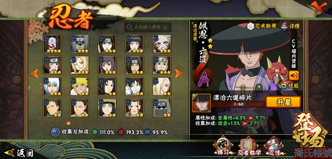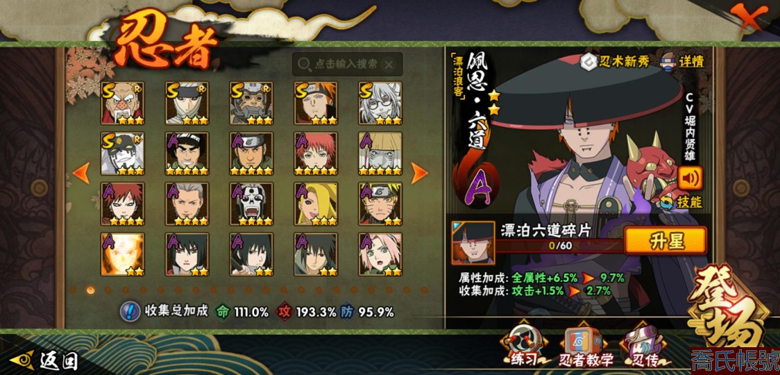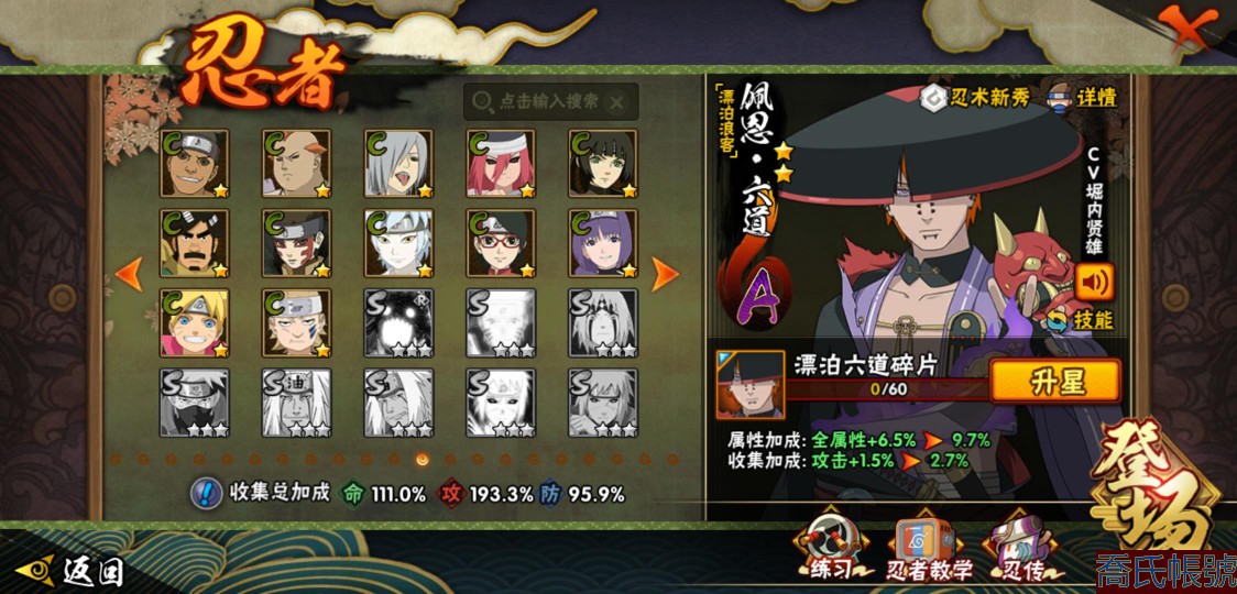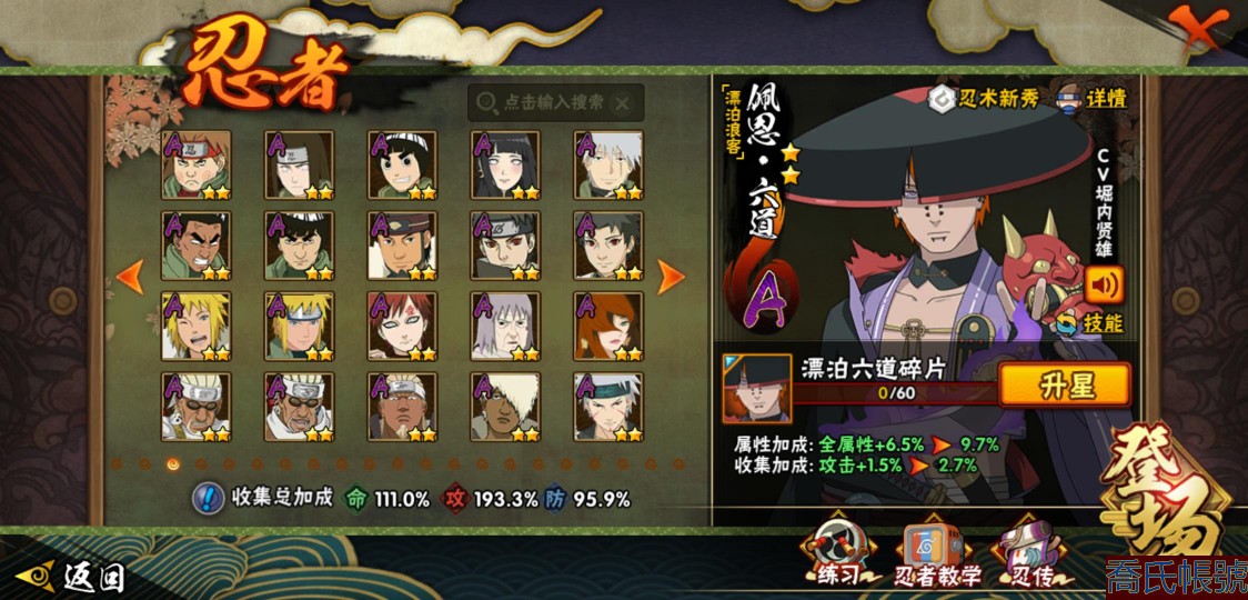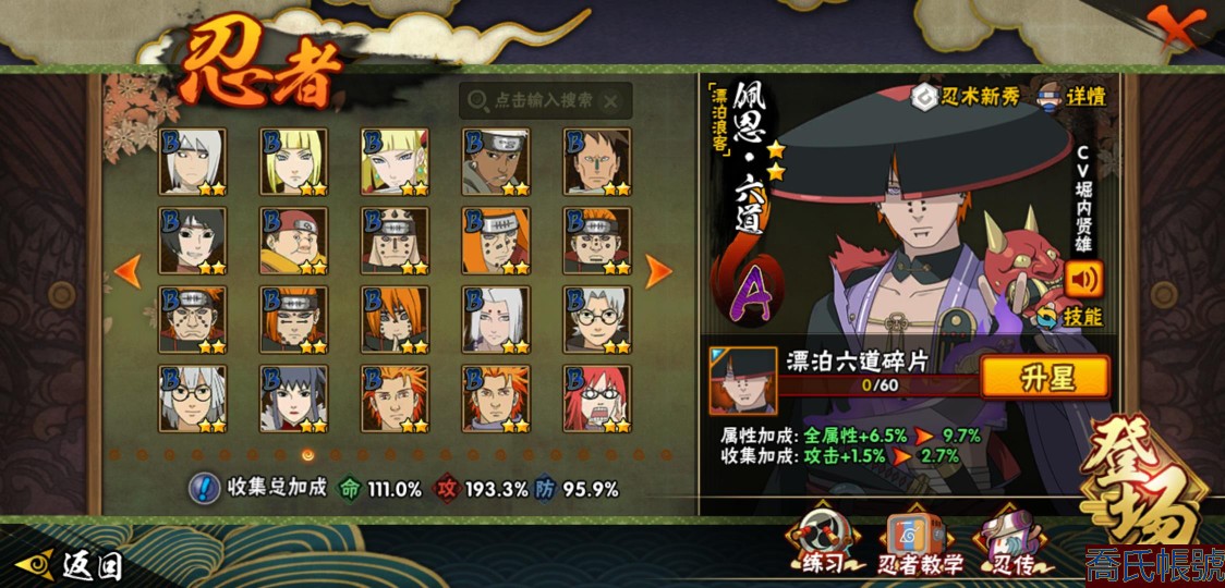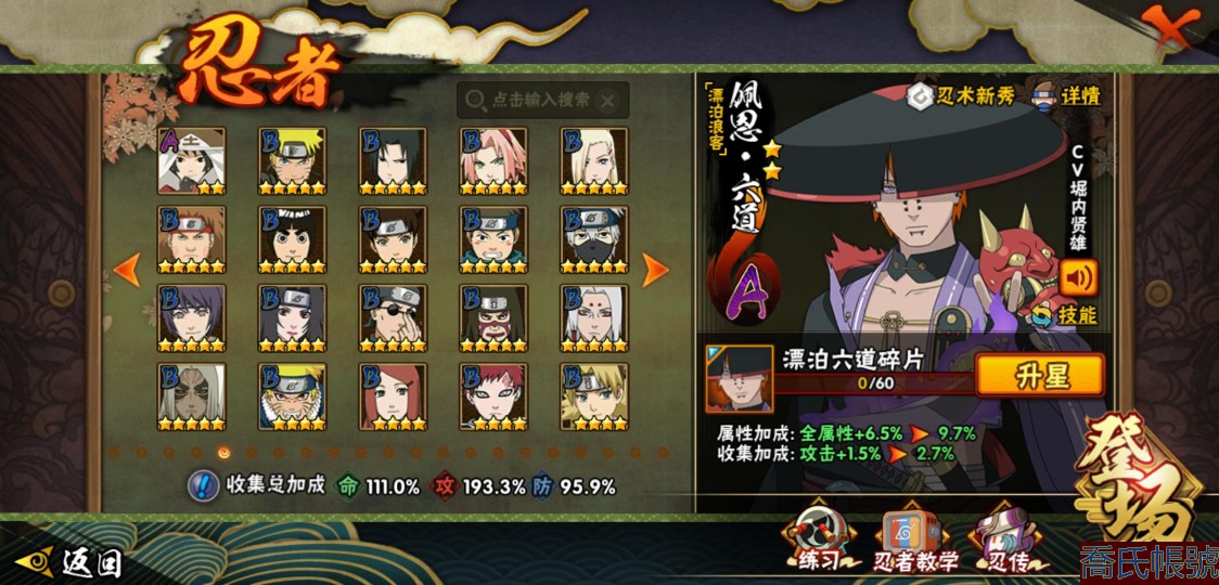 【11等】戰鬥力:1409W+;段位:中忍1階;本服排名:147;戰區排名:未上榜;VI