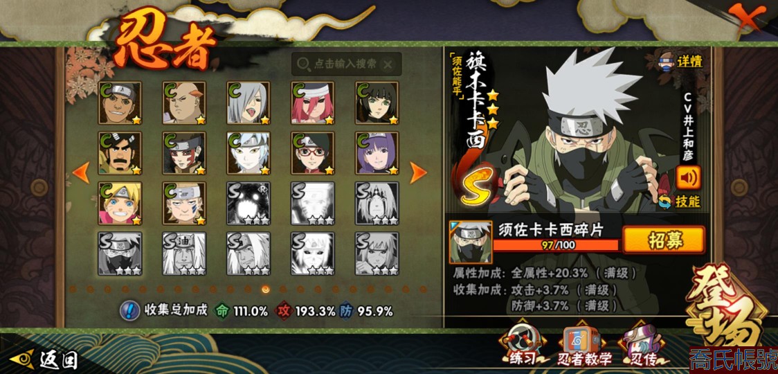 【OBHHVZH280142】戰鬥力:1409W+;段位:中忍1階;本服排名:147;戰區排名:未上榜;VIP13級;S忍26個;A忍55個;通靈獸21個;S忍:猿飛日斬(5星),大蛇丸(4星),綱手(4星),波風水門(4星),須佐能乎宇智波鼬(4星),永恆萬花筒宇智波佐助,仙人模式自來也,舞之豪傑自來也,百豪綱手,死門邁特凱,穢土轉生千手扉間,木葉創立千手柱間,穢土轉生千手柱間,穢土轉生宇智波斑,穢土轉生解宇智波斑,穢土轉生宇智波鼬,須佐能乎宇智波止水,白面具宇智波斑,忍界大戰宇智波帶土,紅夜之刃神秘面具男,三代目土影大野木,二代目土影無,穢土轉生半藏,天道佩恩,仙人模式藥師兜,大筒木桃式;A忍:邁特凱(5星),猿飛阿斯瑪(5星),蠍(5星),幹柿鬼鮫(5星),疾風傳我愛羅(4星),飛段(4星),死司憑血飛段(4星),穢土轉生迪達拉(3星),仙人模式漩渦鳴人,九尾查克拉漩渦鳴人,萬花筒寫輪眼宇智波佐助,須佐能乎宇智波佐助,宇智波泉奈,百豪春野櫻,忍界大戰秋道丁次,忍界大戰日向寧次,忍界大戰李洛克,最終章日向雛田,幻之真容旗木卡卡西,驚門邁特凱,忍界大戰邁特凱,七夕限定猿飛阿斯瑪,宇智波止水,新春限定宇智波止水,新春限定波風水門,青年波風水門,忍界大戰我愛羅,近松十人衛千代,夏日泳裝照美冥,忍界大戰奇拉比,奇拉比,青年艾,達魯伊,漂泊武士千手扉間,半蛇斗篷藥師兜,青年長門,漂泊浪客佩恩六道,小南,夏日泳裝小南,漂泊浪客小南,地怨虞角都,曉大蛇丸,緋流琥蠍,宇智波鼬,新春限定宇智波鼬,夏日限定宇智波鼬,迪達拉,加藤斷,火之意志繼承者卑留呼,羈絆神農,猿飛木葉丸,五代目雷影達魯伊,桃式顯現漩渦博人,六代目水影長十郎,四代目土影黑土;通靈獸:忍犬,藍蛇,蛤蟆吉,忍龜,鐮鼬,猿魔,山椒魚,蜃,熊貓,蛞蝓,蛤蟆仙人,鮫鯊,蛤蟆健,烏鴉,怒鬼,蛤蟆龍,蛤蟆廣,夢貘,砂之守鶴,鷹,烏鴉夏日限定;時裝:百戰宇智波鼬須佐能乎,百戰波風水門,百戰佩恩天道,蜀面豪傑舞之豪傑自來也,百戰大蛇丸,太極靈韻日向花火武當宗師,純白之心白,血霧怪人幹柿鬼鮫,驚雷掠影達魯伊五代目雷影,隱藏內心的面具旗木卡卡西暗部,剎那的藝術迪達拉,編織虛實宇智波鼬,烈土霓裳黑土四代目土影,火之意志綱手百豪,熊貓少女天天峨眉宗師,睿勇新星千手扉間少年,可愛睡衣漩渦鳴人,緋櫻綻放春野櫻百豪,飛瀑流泉長十郎六代目水影,命定之戰宇智波佐助疾風傳;【1504】兩個遊戲捆綁賣,還有一個王者榮耀