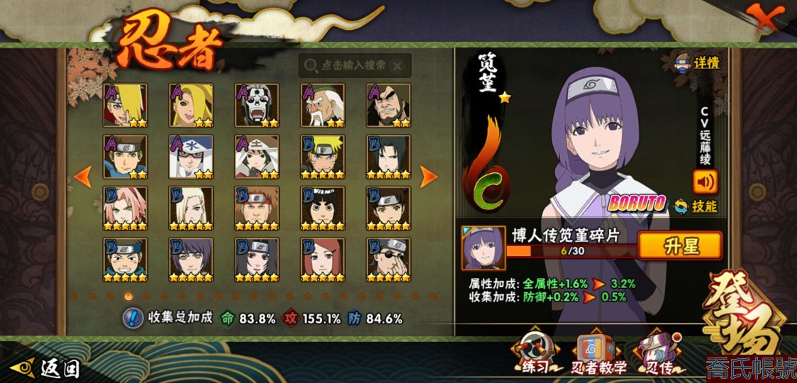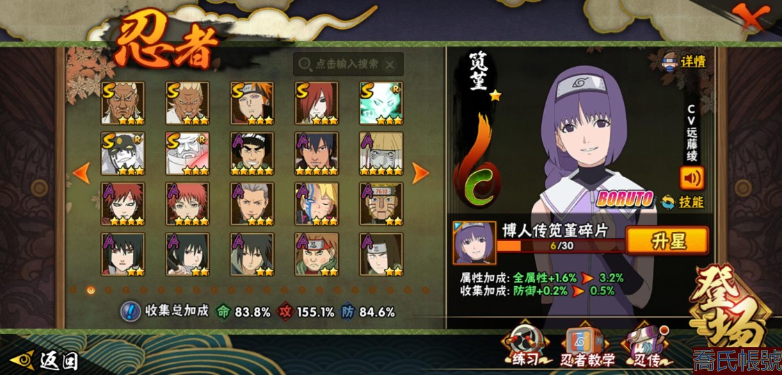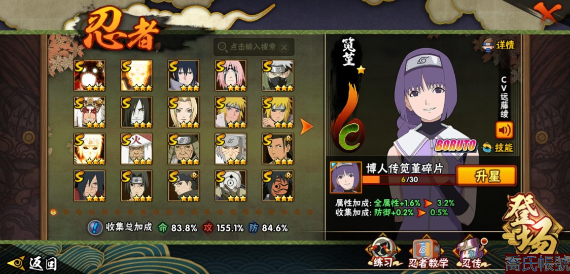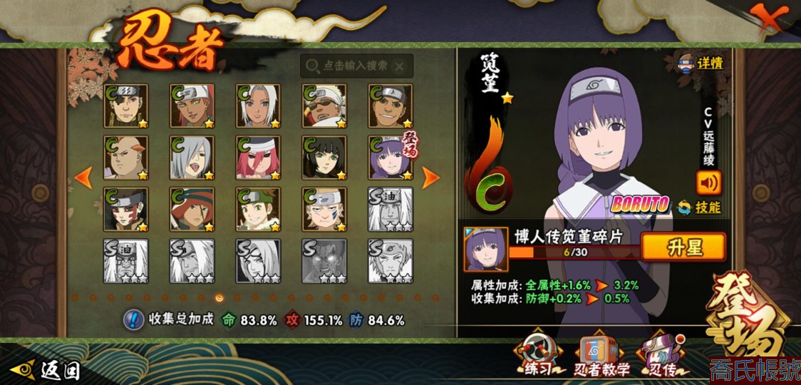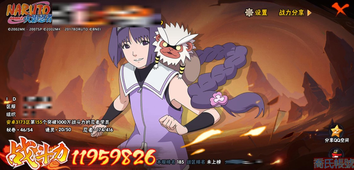 【11等】戰鬥力:1195W+;段位:上忍1階;本服排名:185;戰區排名:未上榜;VI