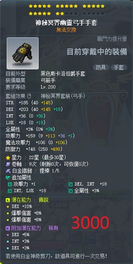 22c 36%敏 傳罕神秘鞋 1白鎚 附潛8%全屬 星火3%全屬 3500t
