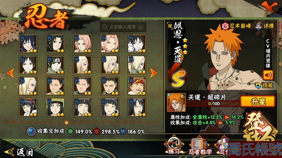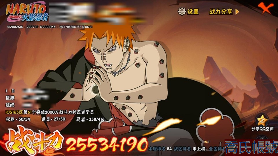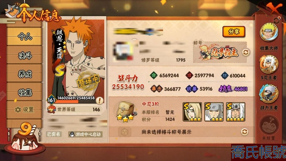 【11等】戰鬥力:2553W+;段位:中忍3階;本服排名:84;戰區排名:未上榜;VIP