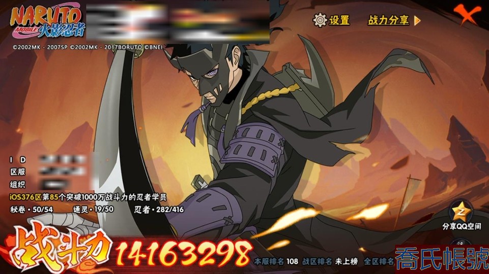 【OBHHVZH495542】戰鬥力:1416W+;段位:上忍3階;本服排名:108;戰區排名:未上榜;VIP15級;S忍42個;A忍74個;通靈獸19個;S忍:宇智波斑,穢土轉生半藏,九喇嘛連結波風水門,天道佩恩,穢土轉生猿飛日斬,猿飛日斬,須佐能乎宇智波鼬,永恆萬花筒宇智波佐助,舞之豪傑自來也,穢土轉生金角銀角,三代目雷影艾,千手柱間,穢土轉生宇智波鼬,二代目水影鬼燈幻月,仙人模式藥師兜,自來也,死門邁特凱,紅夜之刃神秘面具男,千手扉間,忍界大戰宇智波帶土,白面具宇智波斑,暴怒第六尾漩渦鳴人,波風水門,百豪綱手,綱手,穢土轉生解宇智波斑,傳說中的三忍自來也,九喇嘛連結漩渦鳴人,神秘面具男,超佩恩天道,穢土轉生宇智波斑,忍界大戰春野櫻,穢土轉生千手扉間,四代目雷影艾,穢土轉生千手柱間,忍界大戰艾,穢土轉生長門,大蛇丸,五影會談宇智波斑,須佐能乎旗木卡卡西,二代目土影無,穢土轉生波風水門;A忍:邁特凱,猿飛阿斯瑪,幹柿鬼鮫,疾風傳我愛羅,蠍,飛段,九尾查克拉漩渦鳴人,旗木卡卡西,迪達拉,仙人模式漩渦鳴人,初始形態機械鳴人,忍者之路神秘面具男,萬花筒寫輪眼宇智波佐助,須佐能乎宇智波佐助,俠隱江湖宇智波佐助,宇智波泉奈,百豪春野櫻,忍界大戰秋道丁次,忍界大戰日向寧次,忍界大戰李洛克,最終章日向雛田,幻之真容旗木卡卡西,萬花筒寫輪眼旗木卡卡西,忍界大戰旗木卡卡西,宇智波止水,新春限定宇智波止水,新春限定波風水門,青年波風水門,忍界大戰我愛羅,近松十人衛千代,五代目水影照美冥,俠隱江湖照美冥,夏日泳裝照美冥,漂泊武士桃地再不斬,穢土轉生桃地再不斬,忍界大戰奇拉比,奇拉比,青年艾,忍界大戰土臺,三船,俠隱江湖綱手,漂泊武士千手扉間,俠隱江湖藥師兜,半蛇斗篷藥師兜,不風,不緣,不動,青年長門,漂泊浪客佩恩六道,小南,夏日泳裝小南,漂泊浪客小南,新春限定小南,黑絕,角都,地怨虞角都,穢土轉生角都,曉大蛇丸,緋流琥蠍,宇智波鼬,新春限定宇智波鼬,夏日限定宇智波鼬,穢土轉生迪達拉,死司憑血飛段,暴怒宇智波帶土,漂泊浪客宇智波帶土,俠隱江湖大野木,羈絆神農,猿飛木葉丸,六代目水影長十郎,桃式顯現漩渦博人,五代目雷影達魯伊,仙人模式巳月,四代目土影黑土;通靈獸:忍犬,藍蛇,蛤蟆吉,忍龜,鐮鼬,猿魔,山椒魚,蜃,蛞蝓,蛤蟆仙人,熊貓,鮫鯊,蛤蟆健,烏鴉,蛤蟆龍,砂之守鶴,蛤蟆廣,夢貘;時裝:百戰宇智波鼬須佐能乎,百戰波風水門,百戰大蛇丸,百戰佩恩天道,蜀面豪傑舞之豪傑自來也,冷玉豪情綱手俠隱江湖,燼影絕蹤宇智波佐助俠隱江湖,詭刃寒芒藥師兜俠隱江湖,終焉剎寂宇智波帶土漂泊浪客,太極靈韻日向花火武當宗師,血霧怪人幹柿鬼鮫,神使之花小南新春限定,隱藏內心的面具旗木卡卡西暗部,純白之心白,龍的傳人李洛克截拳宗師,風之守護我愛羅忍界大戰,剎那的藝術迪達拉,烈土霓裳黑土四代目土影,飛瀑流泉長十郎六代目水影,緋櫻綻放春野櫻百豪,熊貓少女天天峨眉宗師,編織虛實宇智波鼬;【376】【蘋果QQ】大甩賣