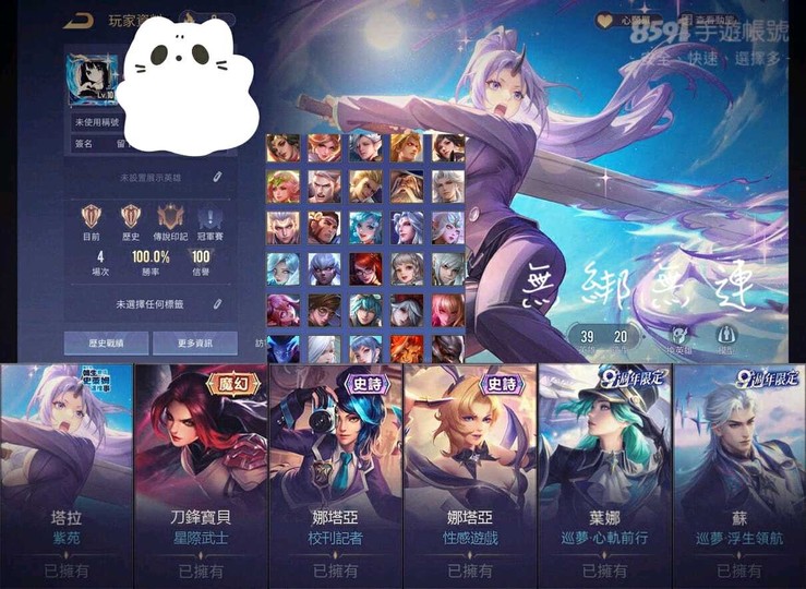 【Garena帳無綁無連、青銅、無VIP、1英、1造】百勝無無青銅紫苑