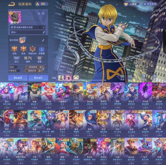 【Garena帳有綁定、戰場傳說、V8、100英、139造】高勝98.7打到ss勝率都不太會掉內看圖