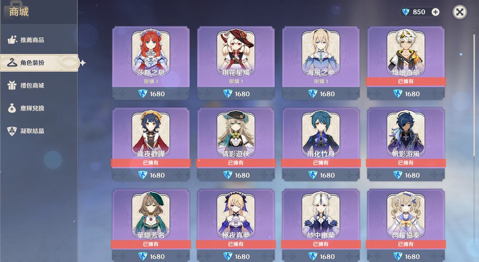 ✦ 時裝只少三件,小月卡天數還有13天(12/3起算),大月卡已購買