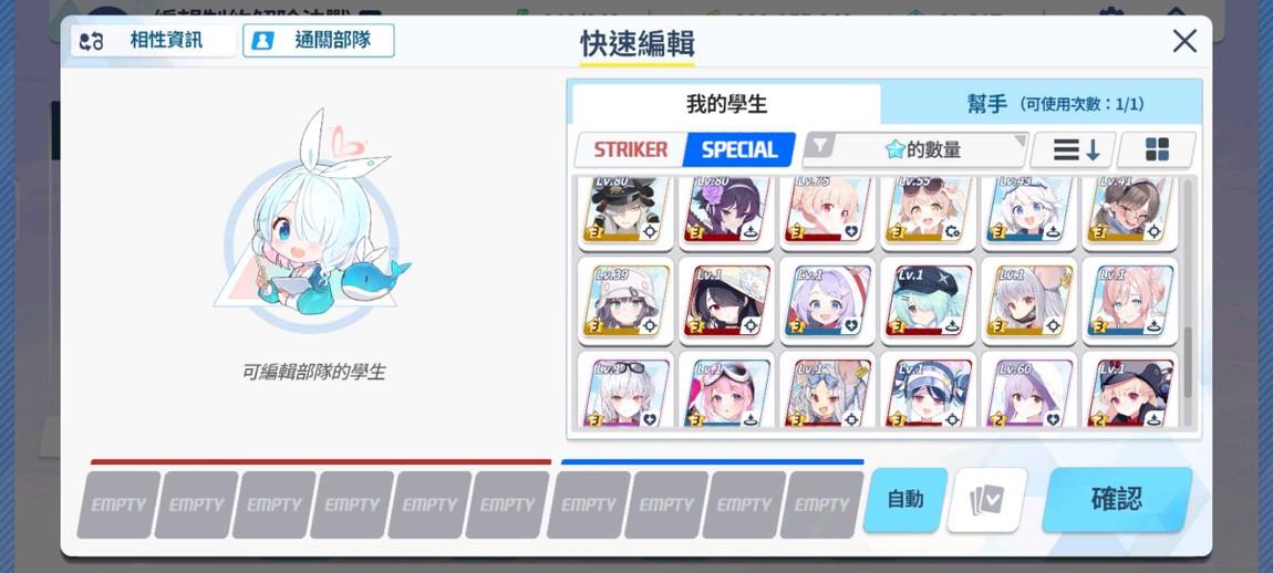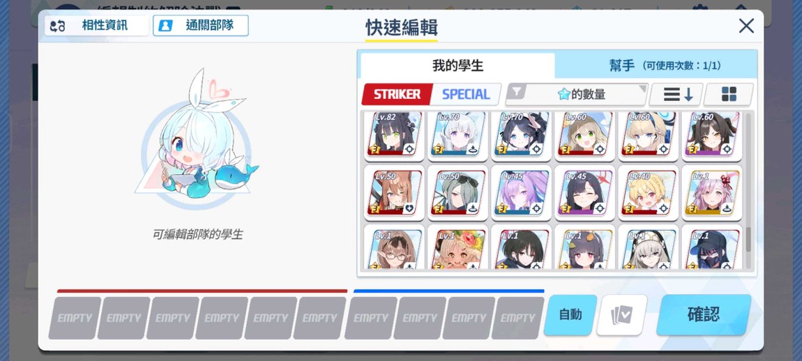 目前61000 神名6400 總力大決戰 每日 其他該打的都會打 可以輕鬆無壓力接手進度 主線都開了 要看劇情可以自己回放看