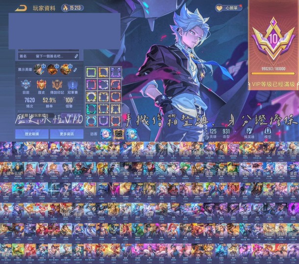 【Garena帳有綁定、鑽石、V10、125英、931造】「大神931」次元 永恆 新年 魔女 刀劍 鬼滅 咒術 死神 獵人 柯南 多稀世