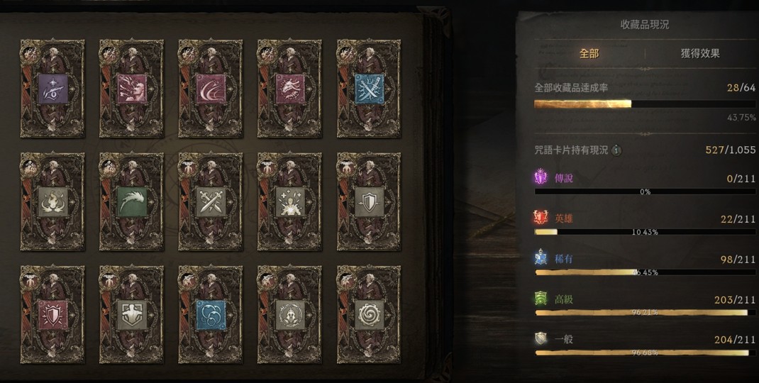 【變身收藏】: 收集卡片(73.19%)、完成收藏品(44.89%)