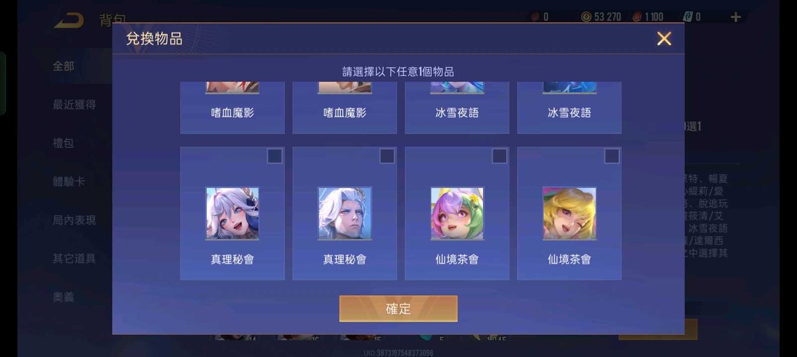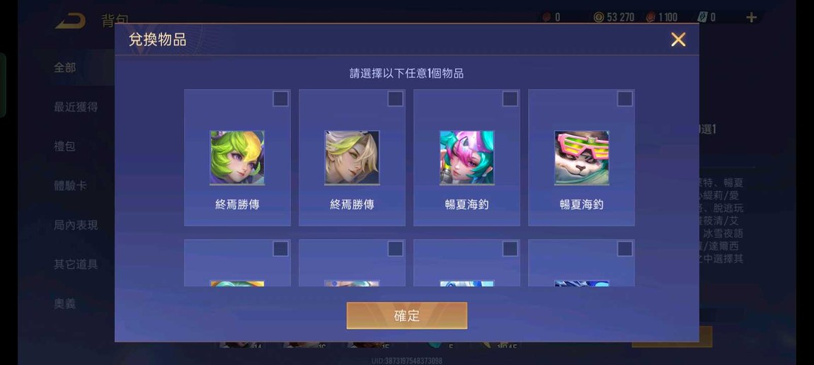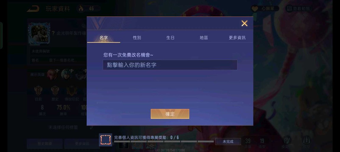 17等級 奧義21萬 金幣5萬3 39隻英雄 19個永久時裝 免費改名2次