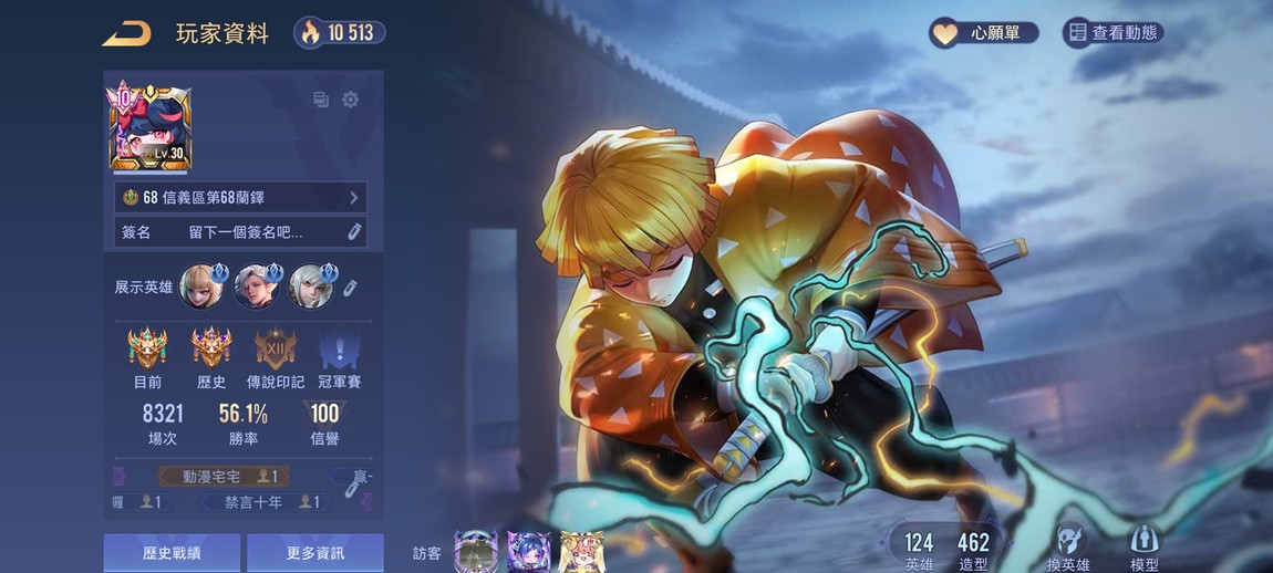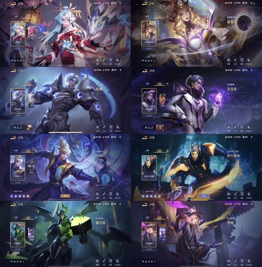 勝率佳!!歷史璀璨傳說印記!!近全英雄近五百造型!共124英雄462造型!勝率近57%!!共12次S戰場傳說印記!!常用奧義皆已齊全!!多課金抽獎造型!