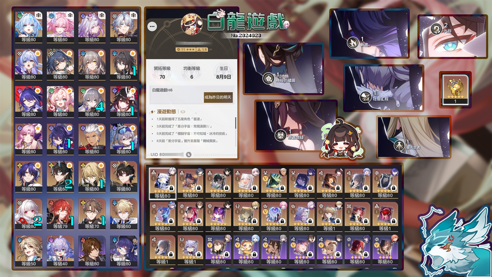 【女、70等、41金角、31金專】H6_遐蝶0+1白厄0+1銀狼1+1昔漣風菫刻律德菈知更鳥阮梅1+0雲璃黃泉騰荒