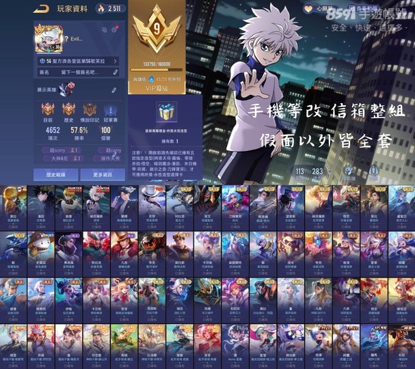 【Garena帳有綁定、璀璨傳說、V9、125英、284造】永恆選擇卡 伏黑惠 善逸 奇犽 基德 影龍 玄冥 庫拉皮卡 雙惡魔 靈煌劍