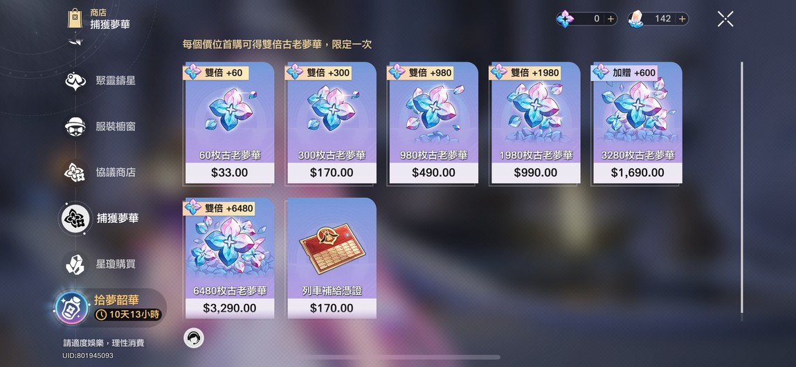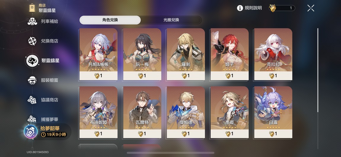 目前卡池小保剛出姬子(姬子四命了)不急售 賣出去前會繼續遊玩