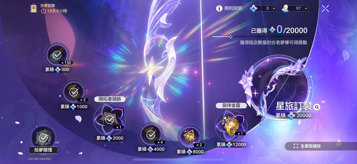 【女、70等、52金角、15金專】鑽框歐皇號530抽11金 生日未設 21遐蝶21風堇20長夜月21緹寶10昔漣