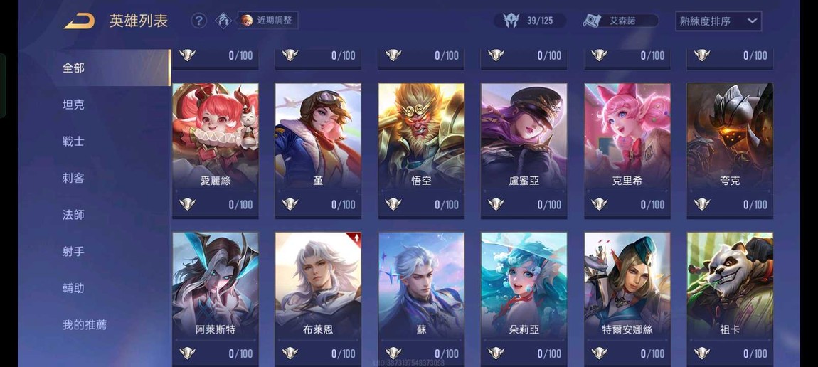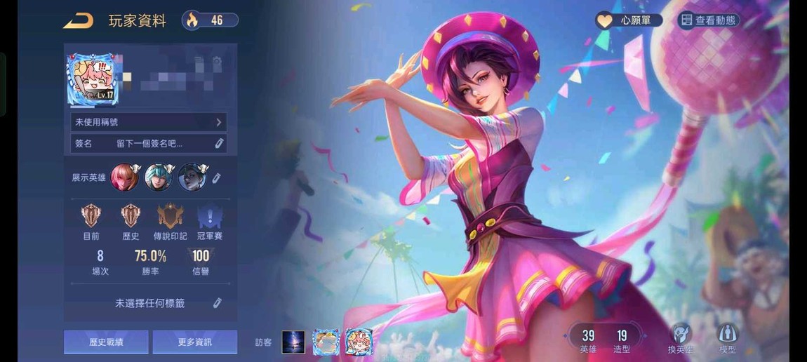 17等級 奧義21萬 金幣5萬3 39隻英雄 19個永久時裝 免費改名2次