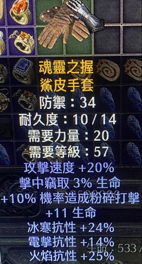 非天-手工壓碎手套(20攻速/c3命/10壓碎/命/冰/電/火抗)頂壓碎