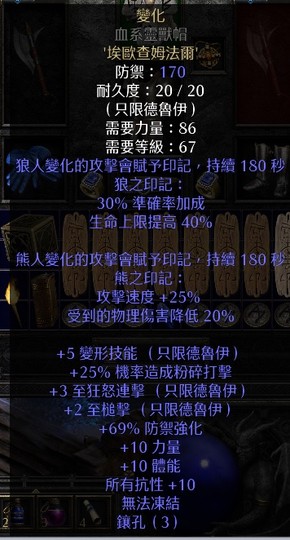 頭部:變化頭(+3狂怒連擊/菁英級底材) 190