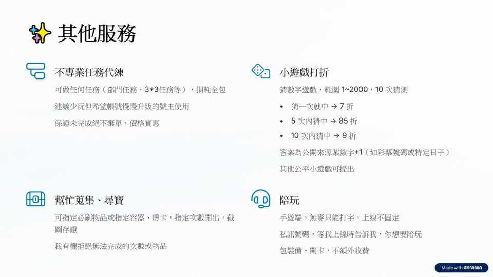物品種類: 代練