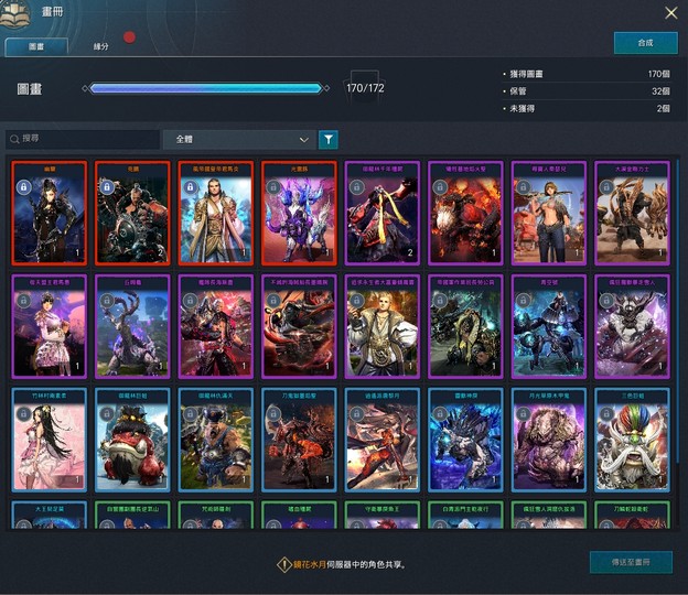 【76等】(鏡花水月)劍士空號 畫冊3洪+君馬惠+72攻+世界王 金書碎片*3 實收六萬