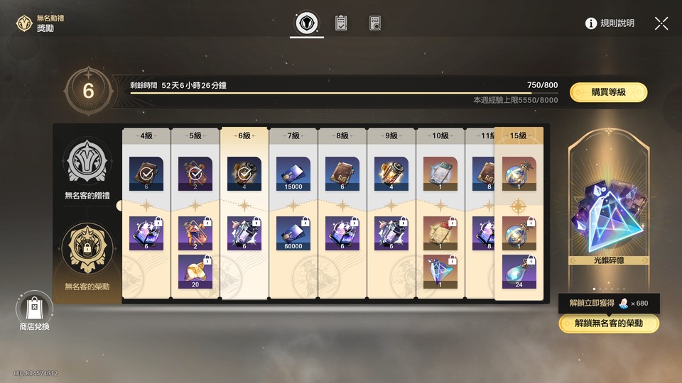小月卡已經過期 3.8版本的大月卡沒有買 這次忘卻之庭打過了