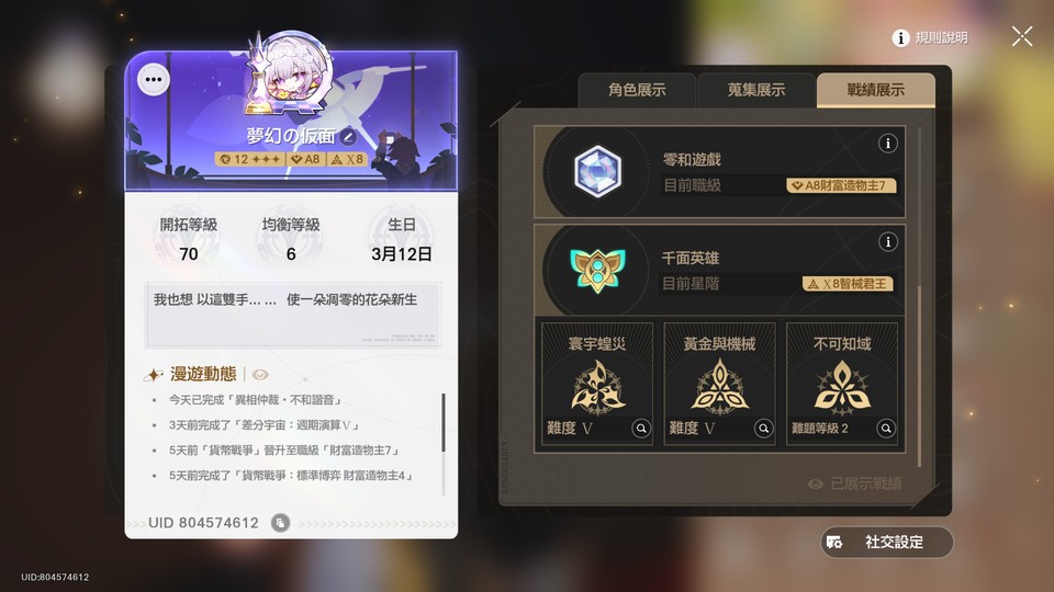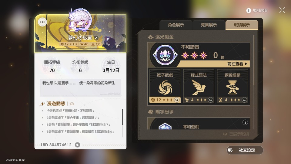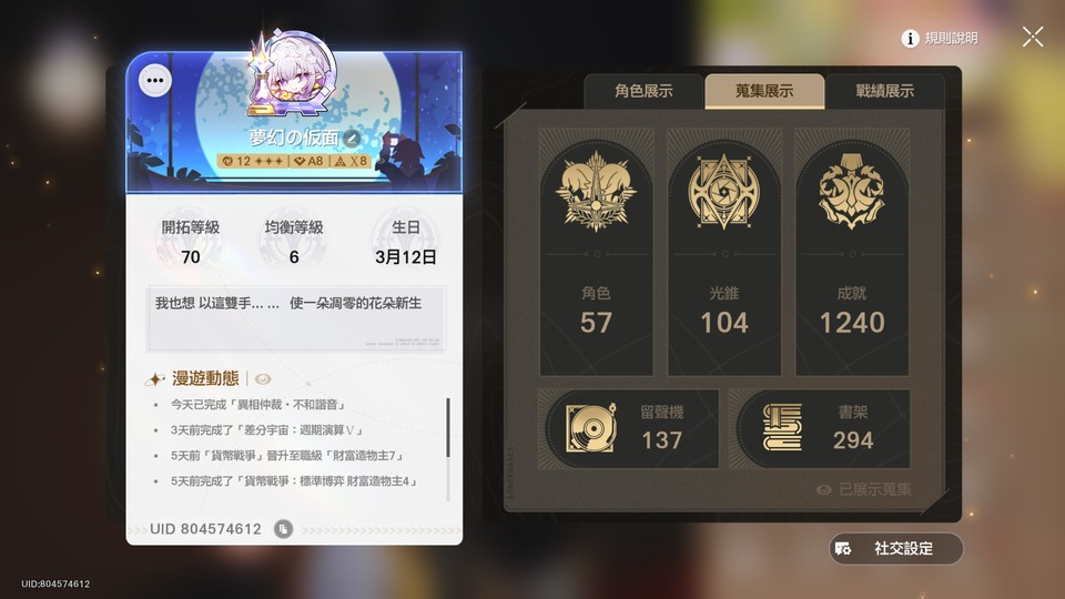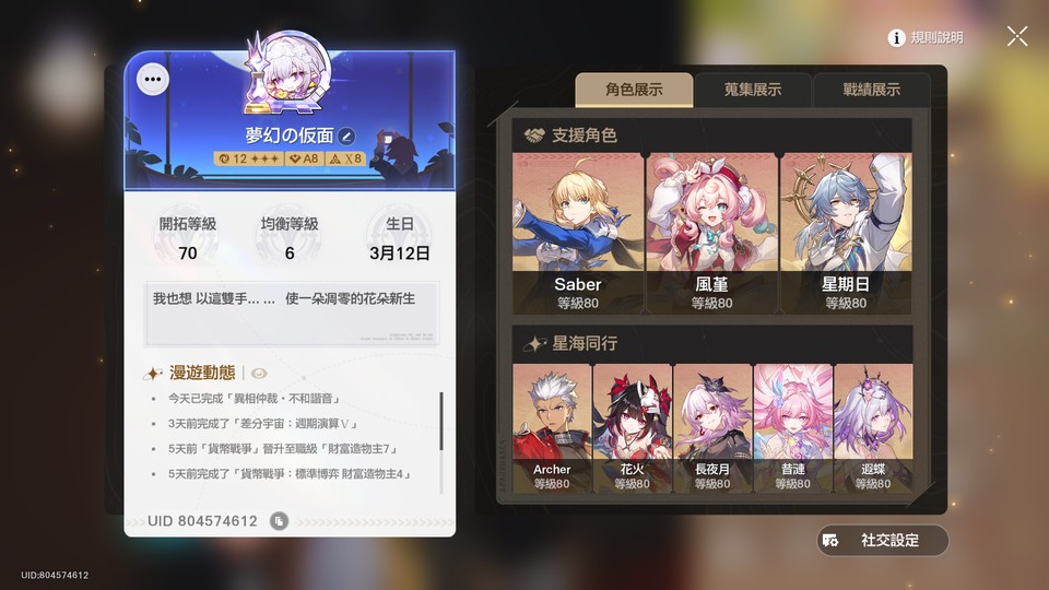 【女、70等、35金角、29金專】崩鐵進度退坑帳號 裡面有各式各樣的隊伍喔!!