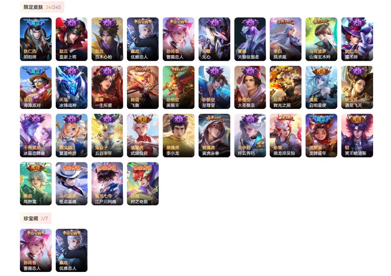 【限定皮肤95】 太乙真人谧流熔炉 马超访茗客 孙膑茶境仙 孙策时之奇旅 鲁班七号江户川柯南 马可波罗怪盗基德 桑启鸣野蒿 嬴政优雅恋人 铠冥王哈迪斯 刘邦剑破天穹 沈梦溪龙舞盛年 孙策乘龙淬吴钩 鬼谷子天穹祈灯 张良古海寻踪 鲁班大师探海日志 裴擒虎擒涛扼浪 暃星界游侠 马可波罗山海玄木吟 嫦娥暖冬兔眠 桑启海盐诗旅 梦奇顽趣 元歌无心 钟无艳超时空战士 甄姬落雪兰心 鬼谷子五谷丰年 孙尚香蔷薇恋人 李元芳云中旅人 狂铁电玩高手 沈梦溪大漠名商 王昭君午后时光 明世隐吟游魔法 兰陵王金庭之子 白起夜都怪侠 裴擒虎寅虎赤拳 芈月幻夜卜梦 黄忠火炮绅士 赵云百木心枪 达摩沙漠行僧 雅典娜黎明之约 苏烈千军破阵 钟馗驱傩正仪 米莱狄胡桃异想国 达摩星际陆战队 程咬金演武夺筹 干将莫邪冰霜恋舞曲 元歌云间偶戏 虞姬启明星使 亚瑟潮玩骑士王 狄仁杰万华元夜 蒙犽狂想玩偶喵 雅典娜单词大作战 云中君纤云弄巧 裴擒虎李小龙 鬼谷子原初探秘者 百里玄策原初追逐者 猪八戒西部大镖客 马可波罗暗影游猎 老夫子醍醐杖 阿轲迷踪丽影 明世隐疑决卦 刘邦夺宝奇兵 李元芳银河之约 韩信飞衡 后羿辉光之辰 沈梦溪星空之诺 弈星混沌棋 李白凤求凰 曹操天狼征服者 兰陵王驯魔猎人 蔡文姬繁星吟游 诸葛亮武陵仙君 周瑜赤莲之焰 夏侯惇朔风刀 盾山御銮 牛魔御旌 露娜一生所爱 孙悟空大圣娶亲 米莱狄御霄 杨玉环遇见飞天 关羽冰锋战神 孙悟空美猴王 狂铁御狮 狄仁杰魔术师 典韦穷奇 芈月重明 曹操烛龙 太乙真人饕餮 白起狰 狄仁杰阴阳师 赵云皇家上将 虞姬凯尔特女王 孙悟空至尊宝 项羽海滩派对 扁鹊炼金王 孙膑妖精王