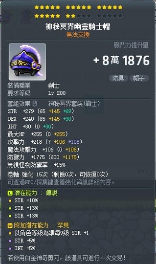 【神秘冥界幽靈騎士帽/護肩/手套/斗篷/鞋/滅龍】22星 次頂 主流 阿戴爾/英雄/聖魂/黑騎/蓮/凱薩/惡殺 退谷 拋售