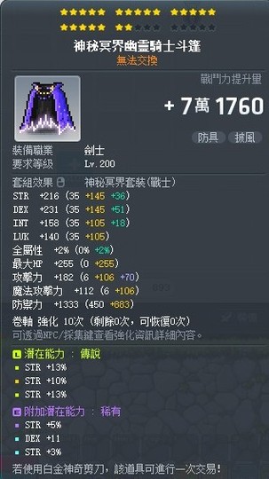 22C神秘騎士斗篷 36%力量 附加稀有(+8%力量)(10X卷軸)