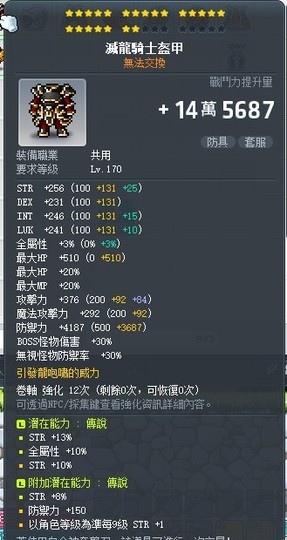 22C滅龍33%力量(含有10%全屬性)附加傳說(+8%力量+9等1力量 共=14%力量)(12X