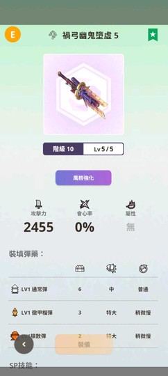 怨虎弩10-5 一虎刀10-5 黑角弓10-5 風漂輕弩10-5 風漂太刀9-2 一套8-1防具