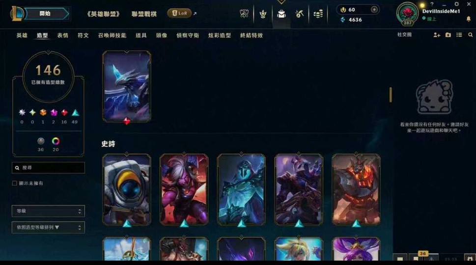 【287等、未定級、154英雄、146造型】154英雄,146造型,放著沒玩的號,歡迎有緣人,可以私看詳細,可小刀