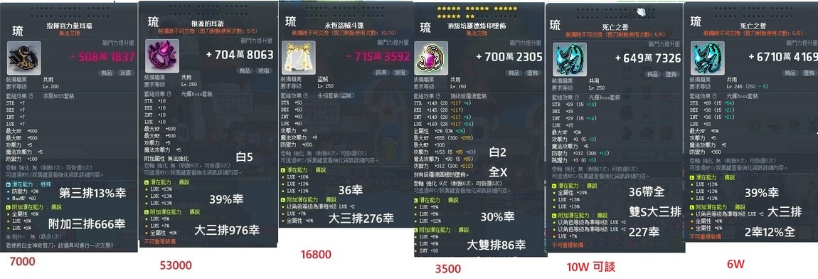 2.雙爆13%敏 附加傳說大三排 976敏 16000