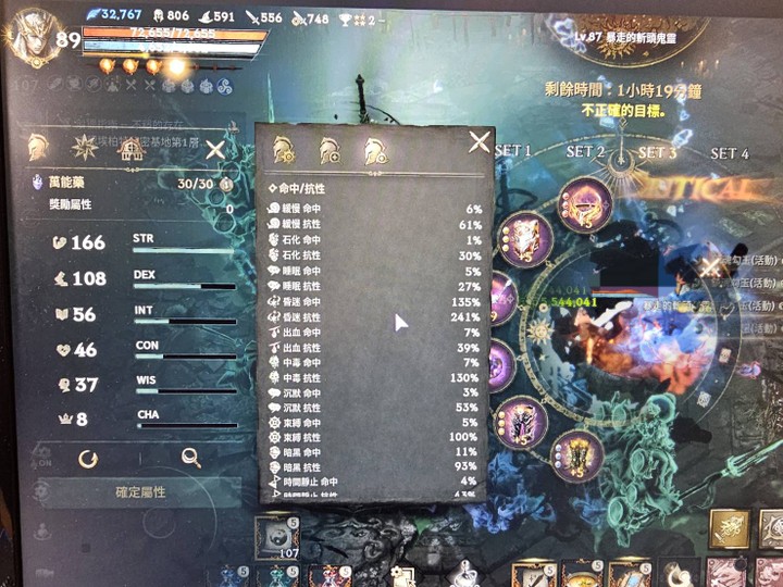 血量72655、攻/命556/748、防/魔防806/591、減傷/PVP減傷327/116、暈命/抗暈135/241%