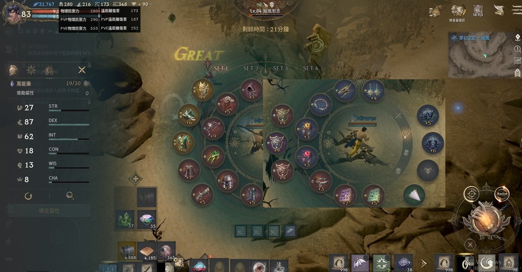 裝備:+7墮落者頭盔(TJ時拚+8~+9可製作紫布)、+5飛龍皮盔甲、新綠臂甲、復仇長靴、飛龍皮手套