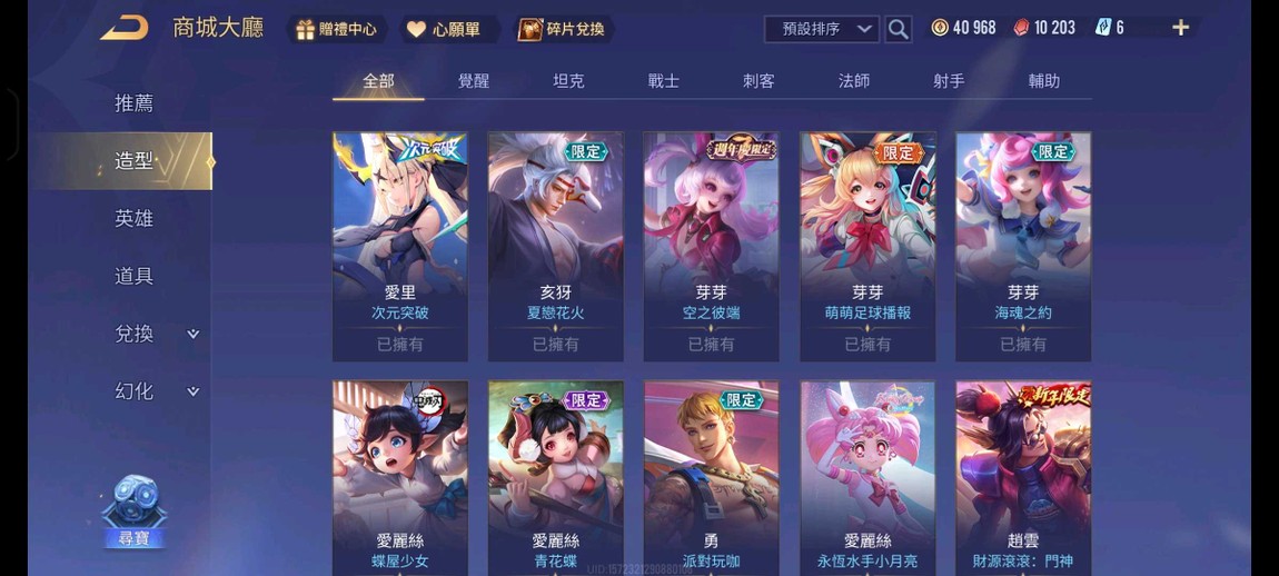 【Garena帳有綁定、鑽石、V9、113英、218造】雙次元假面月亮水手滅世玄冥月落紅蓮無雙靈煌夜叉惡魔星海無雙