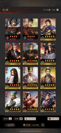 Sp關羽滿紅,魏法,群弓,核張,4紅孫權,無雙大小喬。特技:奸雄,灼裂,熊烈,擁雅,踩踏2,靈動4。農業100。