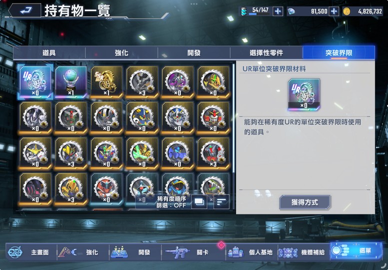 2.34UR機體(包含突破星數的),強T0機體皆有)