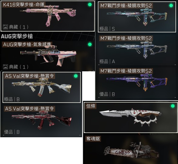 M7兩把極品 S/A 巨浪一把極品 一把優品 K416優品(抽滿5次頭像姓名框有拿)