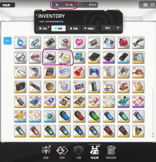 技能、裝備、收藏品養成材料都滿出來