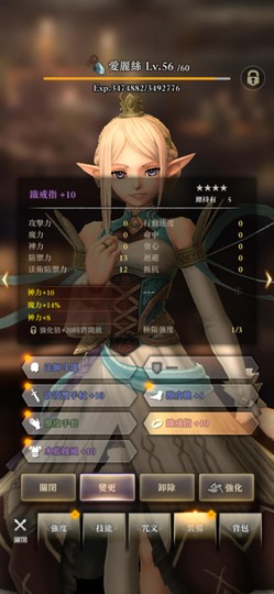 常用的結緣也已刷滿5級,例如第二章的人魚公主(神力和睡眠耐心)、人魚蓋西(命中和封印耐性)、競技場面具男(攻擊力)