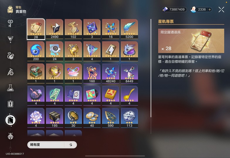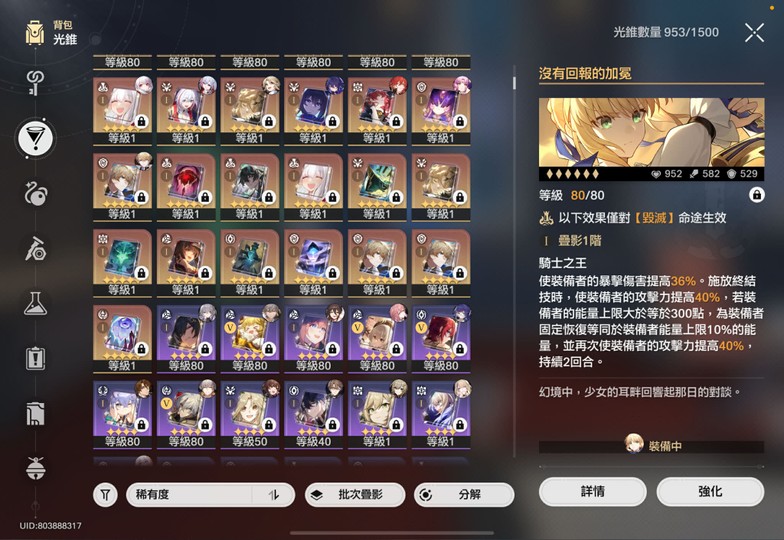 【男、70等、31金角、38金專】昔漣6+1 遐蝶白厄流螢黃泉等多2+1
