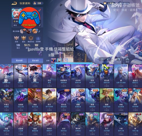 【Garena帳有綁定、星耀、無VIP、31英、47造】蜜莉姆 基徳 柯南 紫苑 森圖安奈特超級玩家 銀咒盛典 蘇巡夢 盧蜜亞薔薇女王