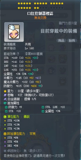 22C 白3全B -4 10力附加-1 +1力劍士永恆頭 9000