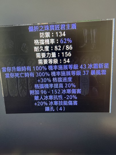 盾:偏折君主盾134防鑲4個死冰-5+5*1