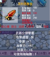 【克利思拳套(龍蝦)】7幸 47攻 6防禦力 乾淨未衝 售出不退貨