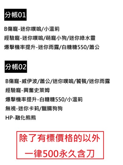 【永久寵物】經驗寵/B傷寵/HP寵/爆擊機率寵/一般寵物