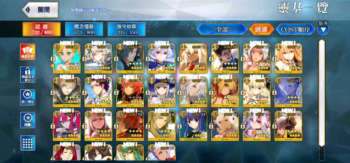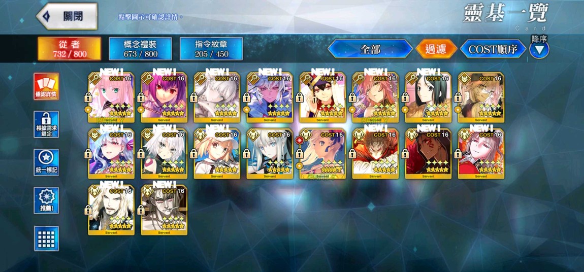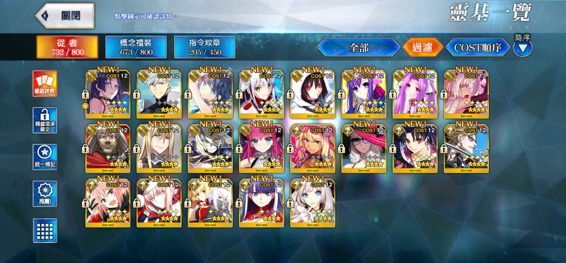 寶一 舊劍、拿破崙、泳裝saber、神祖、泳裝玉藻、司馬懿、阿基里斯、泳裝騎黑傻、羽蛇神、拉二、術傻、術師匠、皇女、梅林、三藏、殺狐、迦摩、開膛手、狂傻、摩根、土方、狂狗、南丁、大公、金時、福爾摩斯、泳裝迦摩、魔王信長、芭潔特、莉莉絲、泳裝BB、光狐、北齋、女梅林、獸尼