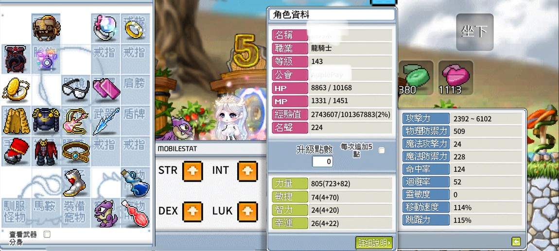 143龍騎士 炎盔 三件套 115冰槍 11攻手套 龍表6102 2E楓幣 包包500滿 雪花556個 WC還有2000