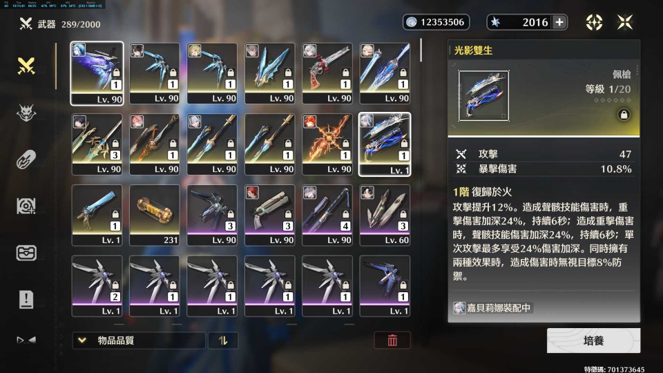 【80等、14金角、12金武】多角色幾乎都有專武 6+1卡提 2+1長離(可議價)